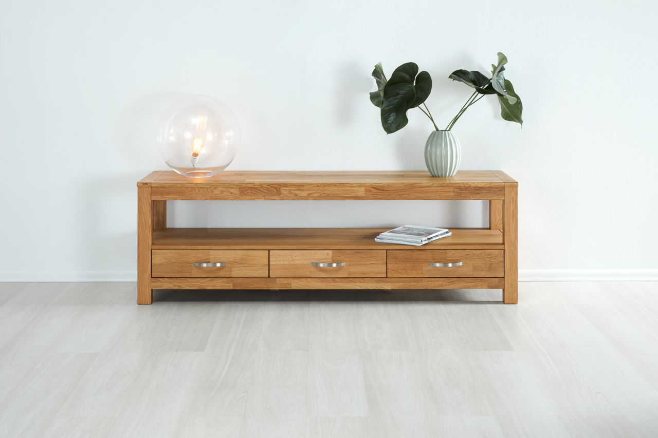 Carvalho maciço e folheado de carvalho. Gavetas com corrediças de extensão total. L170 x A55 x P45 cm