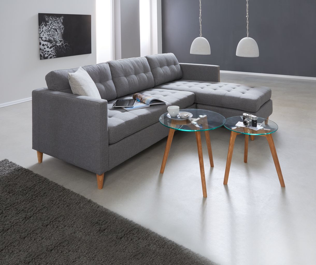 Sofá LOMBORG c/chaise-longue cinzento